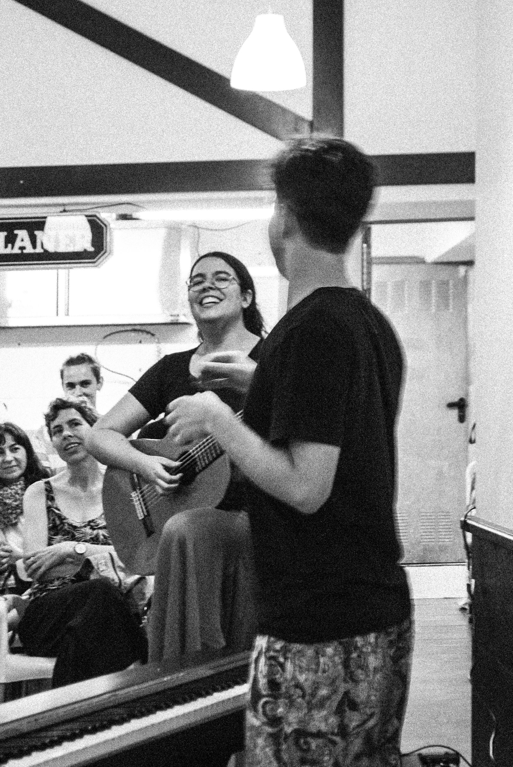 Como unos juglares multiinstrumentistas, van narrando su surrealista historia autodestructiva en clave de humor, música e interacción con el público. ABBA, zamba, música de piedras o villancicos en julio…, cualquier música es buena para sumergirse en lo inesperado.