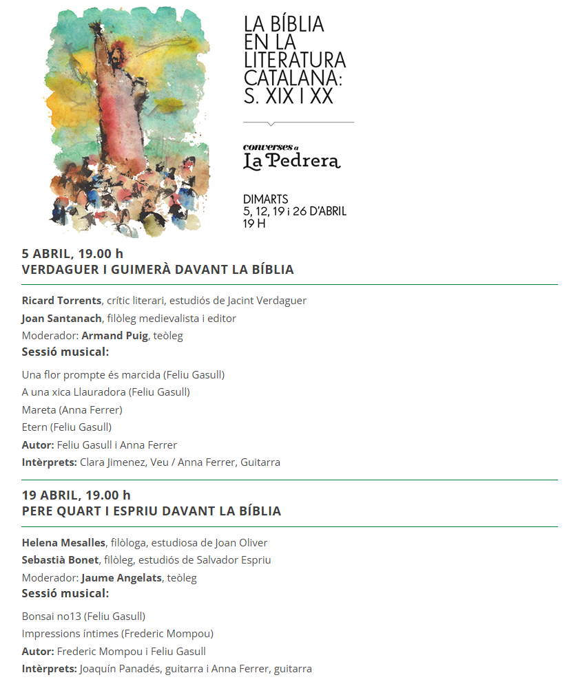 Ciclo de conciertos-conferencias sobre la relación de la Biblia con la literatura catalana. En la Pedrera, Barcelona 2016.